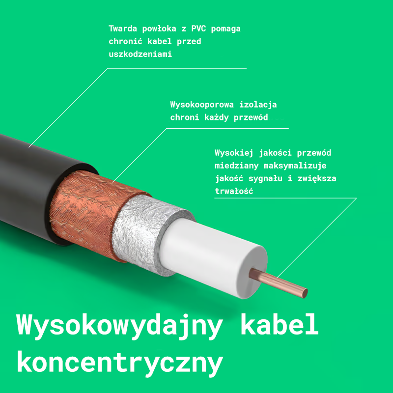 Antena HDTV charakteryzuje się wysokim wzmocnieniem, dużą czułością i szerokim zakresem pokrycia, co zapewnia stabilny i wysokiej jakości odbiór sygnału.