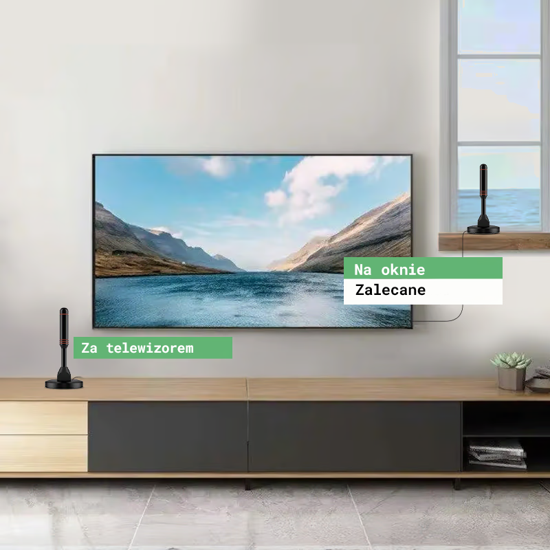 Antena HDTV jest bardzo lekka i nie zajmuje dużo miejsca, dlatego można ją zamontować prawie wszędzie.